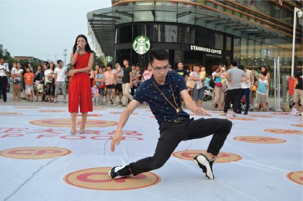 活動時長大約30分鐘,首先快閃人員在王府井南昌路店門口廣場中央集合,穿戴著簡單大方、整齊利索的衣物四處游走在人群中。時間一到,音樂響起,歌手慢慢走近中央,一首振奮人心的“我和你”拉開整個活動的序幕,瞬間引起了在場所有人群的關注。緊接著舞蹈演員閃亮上場,展開了一場激情澎湃的機械舞,帶動現場觀眾情不自禁參與到表演中來,此時人流迅速聚攏,引起圍觀。然后正大食品有限公司員工身著公司服裝,唱著正大集團《愛是正大無私的奉獻》一起出現在廣場中央,隨后幾段歌舞串燒將現場氣氛推向***,在觀眾意猶未盡之時迅速閃開在人群之中。活動過程中穿插進行了分發(fā)公司宣傳材料、食品安全知識宣傳單,現場觀眾品嘗了洛陽正大豬肉調理品、醬鹵產品及集團現代食品。